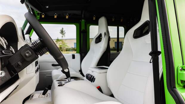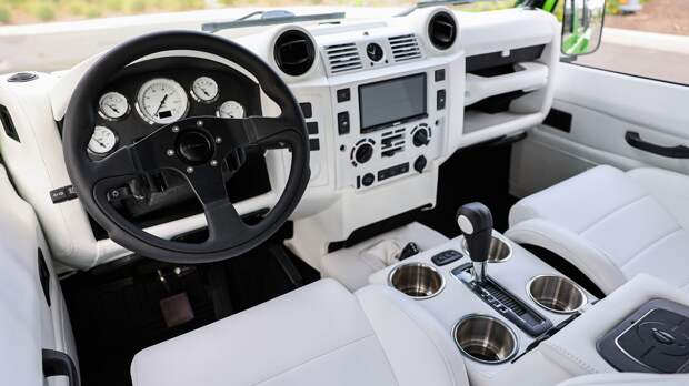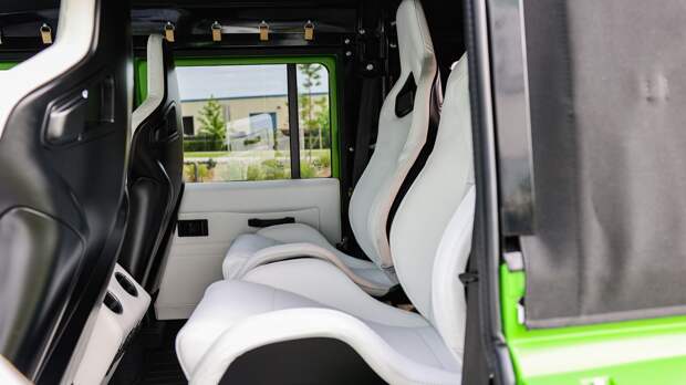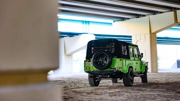 Взяв за основу 25-летний Land Rover Defender 110 Soft Top с мягким верхом, который трудился в Великобритании, машину отправили в тюнинг-ателье, где специалисты сначала провели тщательную реставрацию автомобиля. А вместо штатного двигателя затем установили 450-сильный 6,2-литровый атмосферный LT1 V8 производства General Motors, дополненный выхлопом Borla из нержавеющей стали.