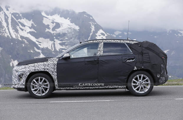 Судя по свежим шпионским фотографиям, следующая Kona обзаведется новыми бамперами и радиаторной решеткой иной формы с треугольными элементами по бокам. Уже известно, что в салоне появится дисплей мультимедийной системы, плавно перетекающий в цифровую приборную панель, а в целом интерьер будет оформлен с оглядкой на электрический Ioniq 5.