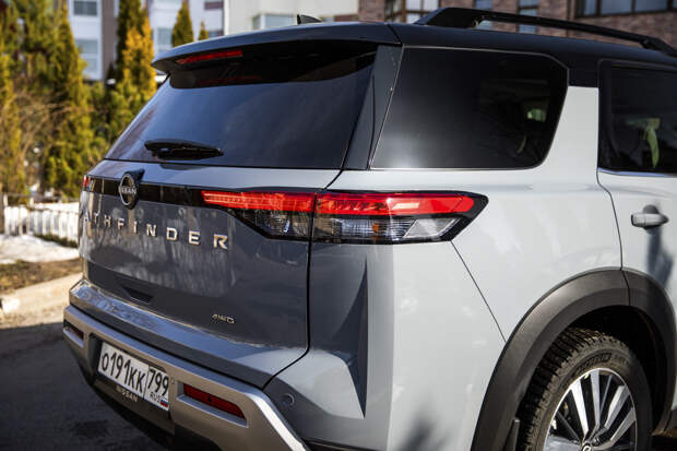 Ниже линии остекления новый Патфайндер напоминает флагманскую Армаду. Даже две Армады одновременно — актуального и предыдущего поколений. От нынешнего взят новый общекорпоративный рисунок фар и решётки, а у прошлого позаимствован рельеф задних крыльев — те самые ярко выраженные бёдра, сделавшие автомобиль столь узнаваемым. Да и линия крыши тоже созвучна с первой Армадой.
