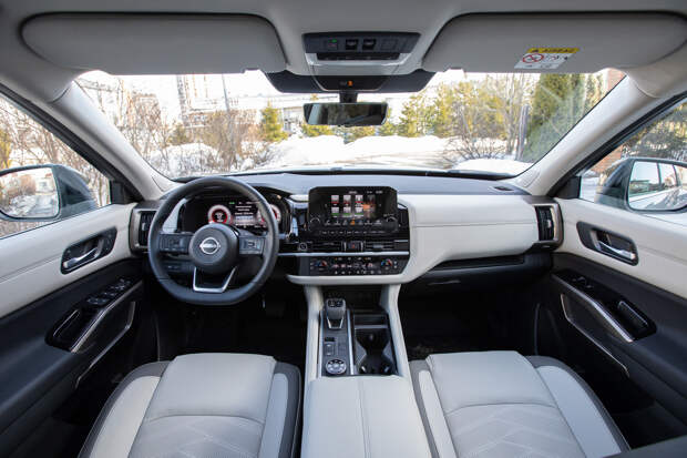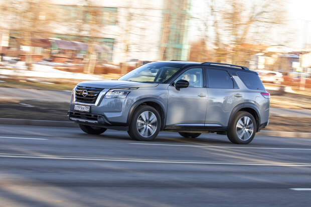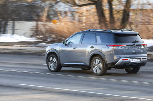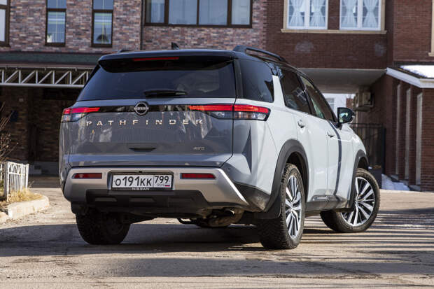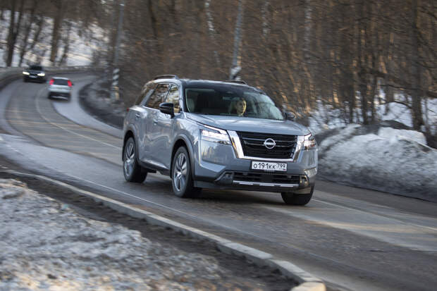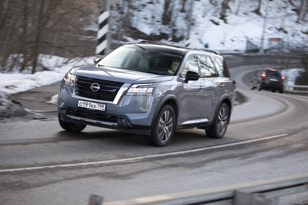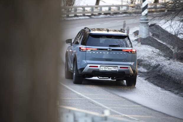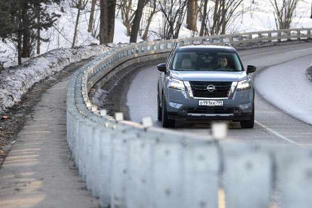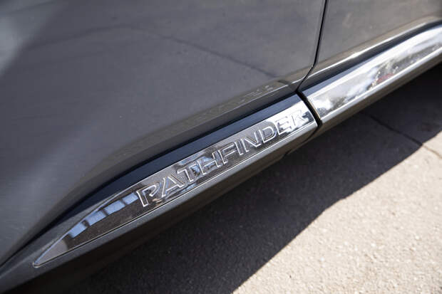 Но на ходу Pathfinder стремится быть максимально далёким от автобусов и по вызываемым у водителя ощущениям тяготеет больше к внедорожникам. Это довольно длинная рейка с пустоватой обратной связью руля, увесистые шлепки больших колёс по неровностям, не слишком острые реакции на управление. Хотя фактически Pathfinder всё же является скорее кроссовером: со 194 мм дорожного просвета, скромными углами въезда и съезда (около 16 градусов и тот, и другой) и полноприводной трансмиссией, задействующей заднюю ось с заметной задержкой.