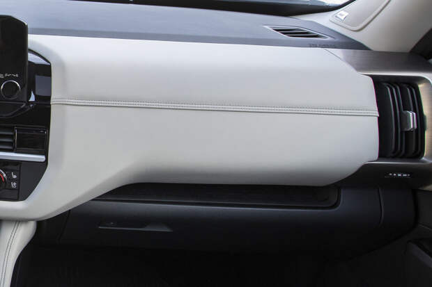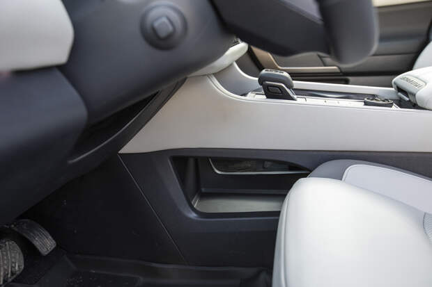 Но благодаря модным решениям вроде цифровой приборки, сверхкомпактного джойстика трансмиссии (с очень приятной кинематикой перемещения) или руля спортивного толка, этот интерьер не кажется монументальным и тяжеловесным. Тот же эффект, что и с кузовом: габариты умело замаскированы с помощью разных «архитектурных» приёмчиков. В том числе снова успешно используется двухцветность — светлая кожа даёт дополнительное ощущение воздуха и простора.