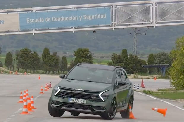 Сначала кроссовер разогнали до 76 километров в час — именно на этой скорости стандартно проводится «лосиный тест». Однако при маневрировании во втором же секторе Sportage не вписался в поворот и сбил несколько конусов.
