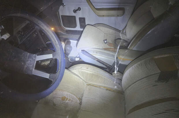 Относительно чистый салон тоже оставляет желать лучшего. Внутри видны сиденья с порванной обивкой, поцарапанные и выцветшие пластиковые детали. На табличке с подписью Кэрролла Шелби видно число 230, что указывает на порядковый номер экземпляра. Автомобиль сохранил оригинальные 15-дюймовые колесные диски Centurian, однако шины придется заменить.