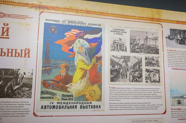 Новая выставка, открывшаяся в Музее Гаража особого назначения ФСО России, переносит посетителей в 1913 год. Этот год можно смело назвать временем наивысшего развития Императорской России. И именно в 1913-м в Михайловском манеже в Санкт-Петербурге состоялось громкое и масштабное событие — IV Международная автомобильная выставка.