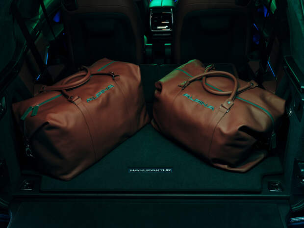 На передних подголовниках вышита историческая сине-зеленая эмблема Alpina. Еще одна деталь — серебристая табличка на центральной консоли с гравировкой порядкового номера машины — от 1 до 120. В стандартное оснащение входят раздельные кресла второго ряда, акустика Bowers & Wilkins и 8-ступенчатый автомат с подрулевыми лепестками.В комплекте с каждым автомобилем покупатель получит две фирменных кожаных дорожных сумки в тон интерьеру.