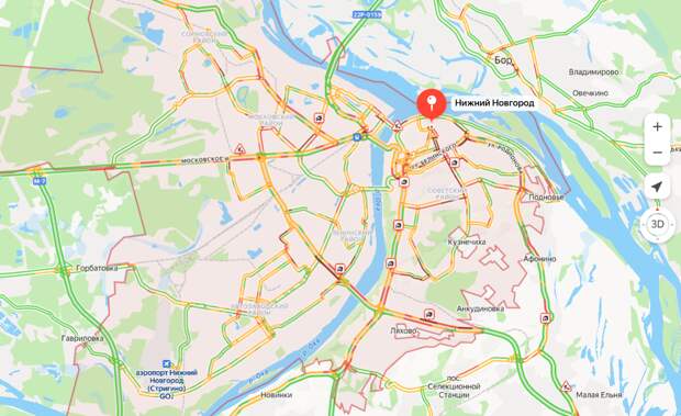 «Это актуальная картина заторов в Нижнем Новгороде — 10 из 10 баллов», -- отмечается в публикации. На карте Яндекс с отображением пробок видно, что крупные заторы образовались на основных городских магистралях -- улице Ванеева, Белинского, Нартова, на Деловой улице, а также на мостах через Оку.