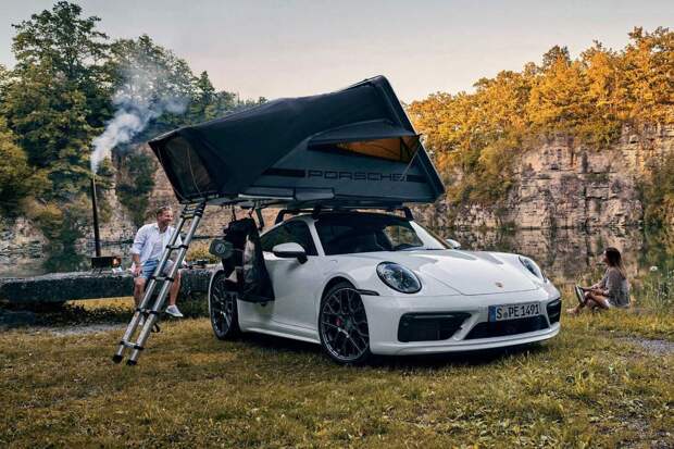 Компания Porsche разработала приятный аксессуар для автопутешественников. Теперь владельцы немецких спорткаров, отправляясь в дальнюю поездку, могут не переживать о комфортном ночлеге. Марка выпустила двухместную палатку, которая крепится на крыше автомобилей в специальном жестком кейсе. При этом палатка стоимостью 4850 евро (примерно 300 000 рублей по текущему курсу) позволит переночевать, как в безоблачную, так и в дождливую погоду.