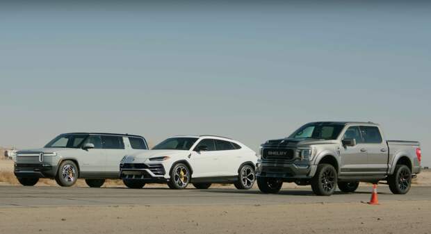 Авторы канала Throttle House устроили очередную гонку по прямой, но на сей раз в дрэг-рейсинге решили свести три модели, не предназначенные для этого. Участниками состязания стали американский электрический кроссовер Rivian R1S, американский же пикап Ford F-150 в версии от прославленного ателье Shelby, а также итальянский кроссовер Lamborghini Urus.
