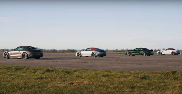 Авторы популярного YouTube-канала carwow устроили очередное состязание по дрэг-рейсингу, в котором сошлись не самые подходящие для конца декабря автомобили — в гонке встретились премиальные и очень мощные кабриолеты с мягким складным верхом. Горячей новинкой оказался Mercedes-AMG SL 55, в соперники которому выбрали не такие свежие с точки зрения дебюта, но актуальные Porsche 911 Carrera GTS Cabriolet, BMW M850i Convertible и Jaguar F-Type R Convertible.