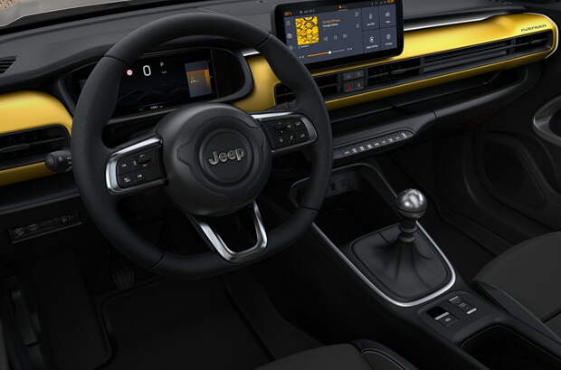 Спереди бензиновый Jeep Avenger отличается от одноимённого электромобиля только отсутствием синего шильдика на маске между фарами. Сзади добавляется одинокий патрубок выхлопной системы, но бампер меняется минимально. В салоне приметы топливной версии — селектор механической коробки передач и «лишняя» педаль.