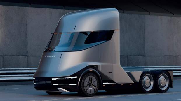 Любопытно, что все трое авторов создали очень похожие образцы, явно вдохновлённые электрическими тягачами Tesla Electric Semi Truck: с коротким полукапотом, шлемовидным остеклением и камерами вместо зеркал.
